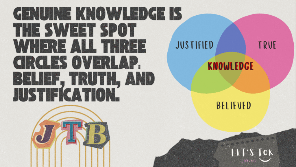 - Your JTB Analysis: You might believe he did it ( Belief). It might even be true that he did it (Truth). But what’s your justification? Did you see him do it? Or are you just assuming because he’s nearby? Applying JTB forces you to seek proper justification before concluding you know he’s lying. It prevents false accusations and teaches him the importance of evidence.